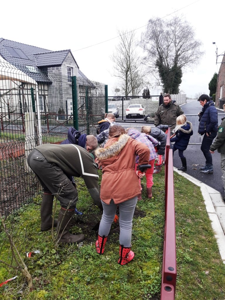 Le 25 janvier 2018 les écogardes du Parc naturel régional Scarpe-Escaut se sont rendus dans l’école communale de Château L’Abbaye pour travailler avec les élèves de la classe de CE1-CE2. Il s’agissait de conclure un projet d’aménagement paysager engagé par la commune et le Parc dans le cadre de l’opération « Plantons dans nos communes ». Dans un premier temps les écogardes sont venus en classe pour présenter le PNRSE, les missions des écogardes et proposer une animation sur le thème de l’arbre et de la haie diversifiée. Ensuite, les élèves, encadrés par les écogardes, sont passés à la pratique et ont planté une cinquantaine d’arbustes devant l’école, dans la rue du Cimetière.