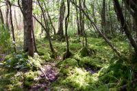 Une tourbière se caractérise par un sol constamment gorgé d’eau stagnante ou peu mobile, privant d’oxygène les micro-organismes (champignons et bactéries) responsables de la décomposition et du recyclage de la matière organique. C’est dans ces conditions anoxiques que se forme une litière végétale riche en carbone appelée « tourbe ». (photo: un boisement dominé par le bouleau, installé sur un tapis spongieux car constitué de mousses ... voici l'un des paysages typiques des tourbières, la "boulaie à sphaignes") |