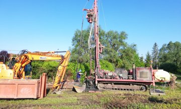 Photo 1 [Le forage dans un milieu naturel est très impressionnant -notamment lorsqu’il s’agit d’implanter un piézomètre à 40 mètres de profondeur !- et surtout très réglementé (Loi sur l’eau). Il est en effet interdit, sauf dossier réglementaire argumenté, de forer un champ ou un jardin !]