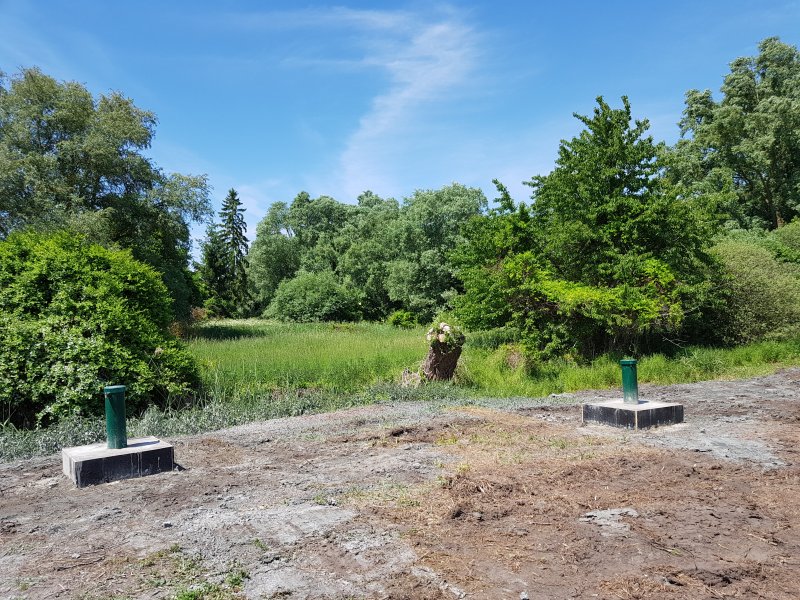 Au sein de chaque site, deux piézomètres* (forages permettant d’accéder à l’eau d’une nappe phréatique) ont été installés. Le premier d’une profondeur d’une dizaine de mètres atteint la nappe des sables. Le second, profond de 40 mètres, sonde la nappe de la craie. Ces installations pérennes, équipées de sondes multiparamétriques, permettront d’acquérir diverses données sur la quantité et la qualité des eaux (niveaux, pH, température, composition chimique, etc.) et d’identifier les relations entre les masses d’eaux souterraines et la surface des tourbières.