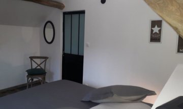 Jour d'arrivée libre. Gîte 43 m²très confortable au style "atelier" avec cour commune avec les propriétaires. Jardin privatif avec arbres, potagers, fleurs, barbecue, salon de jardin, chaises longues. Place de stationnement privée dans la cour (et abri couvert pour une voiture et/ou vélos et motots), abri de jardin sécurisé. Rez-de-chaussée : Séjour avec coin cuisine équipée (frigo-congélateur, lave-vaisselle, micro-ondes, TV avec lecteur DVD et port USB, chaine HIFI), salle d'eau avec douche italienne, vasque, WC et laverie (lave-linge séchant). Étage : palier avec un coin bureau et une chambre avec soit un lit 180x200 ou 2 lits de 90x200. WIFI, équipements bébé sur demande, draps fournis. Chauffage électrique, charges incluses.