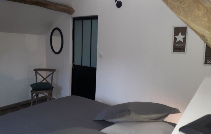 Jour d'arrivée libre. Gîte 43 m²très confortable au style "atelier" avec cour commune avec les propriétaires. Jardin privatif avec arbres, potagers, fleurs, barbecue, salon de jardin, chaises longues. Place de stationnement privée dans la cour (et abri couvert pour une voiture et/ou vélos et motots), abri de jardin sécurisé. Rez-de-chaussée : Séjour avec coin cuisine équipée (frigo-congélateur, lave-vaisselle, micro-ondes, TV avec lecteur DVD et port USB, chaine HIFI), salle d'eau avec douche italienne, vasque, WC et laverie (lave-linge séchant). Étage : palier avec un coin bureau et une chambre avec soit un lit 180x200 ou 2 lits de 90x200. WIFI, équipements bébé sur demande, draps fournis. Chauffage électrique, charges incluses.