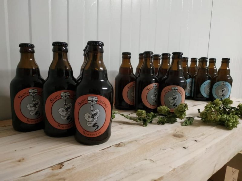 Durant l’été 2019, la Brasserie Saint Amand voit le jour dans une ancienne ferme du village de Bruille. Avec Amand, saint patron des brasseurs et son emblème le serpent, les symboles prennent naturellement forme sur les premières ébauches du logo de la brasserie.
